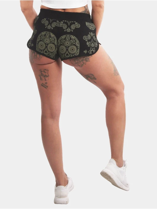 Damen Shorts Skull Pattern Allover in schwarz